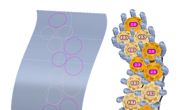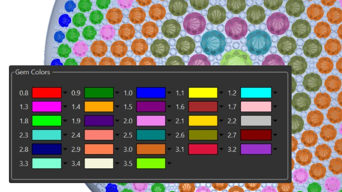 Vous pouvez désormais attribuer des couleurs fixes aux pierres précieuses en fonction de leur taille, ce qui garantit la cohérence et l'alignement sur les normes de vos clients. Une solution parfaite pour des flux de travail rationalisés et la précision dans chaque conception.