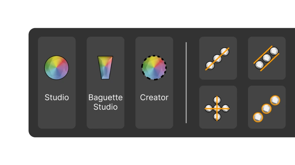 Découvrez une suite complète d'outils de placement de pierres précieuses conçus pour transformer vos idées en compositions parfaites. Qu'il s'agisse de récupérer des pierres créées dans d'autres systèmes, de créer des baguettes personnalisées, de générer des pierres à partir de courbes ou d'automatiser des cercles parfaits, chaque commande est conçue pour la précision, la créativité et l'efficacité. Qu'il s'agisse de normaliser des couleurs, d'importer des pierres ou de se connecter directement avec des fournisseurs, RhinoArtisan vous offre un contrôle total et une cohérence dans chaque conception.