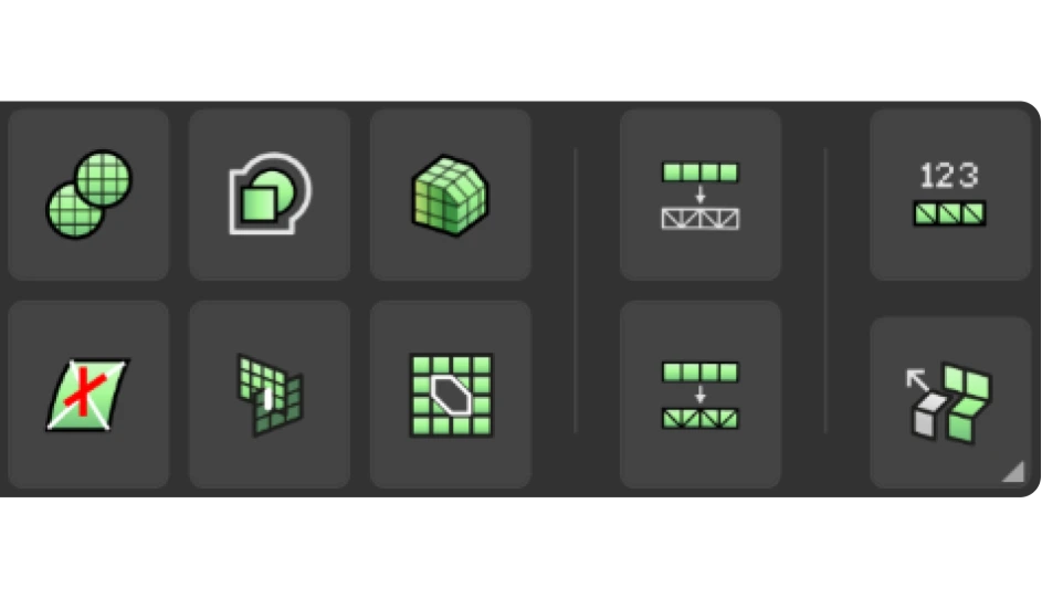 Découvrez le nouvel onglet "Mesh", où tous vos outils de création et d'édition de maillages sont joliment organisés et facilement accessibles. Une présentation compacte et intuitive conçue pour rationaliser votre flux de travail et améliorer votre expérience.